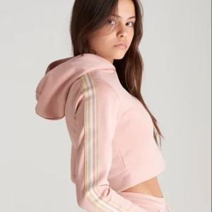 Girls Pink Taped Cropped Hoodie Sik Silk