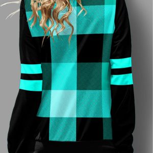 Lace Up Long Sleeve Plaid Sweatshirt Rotita