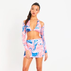 Mina Pink Swirl Printed High Waisted Mini Skirt MISSYEMPIRE