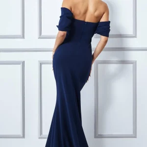 OFF THE SHOULDER SATIN BAND MAXI DRESS – ROYAL BLUE GODDIVA