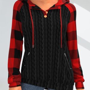 Plaid Twisted Zipper Detail Long Sleeve Hoodie Rotita