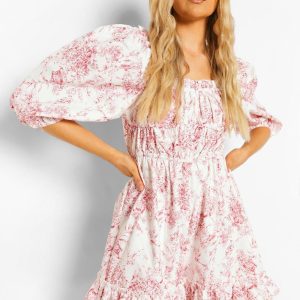 PORCELAIN PRINT PUFF SLEEVE RUCHED PLAYSUIT Boohoo