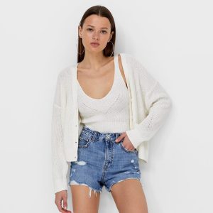 Ripped denim shorts Stradivarius