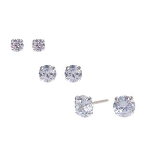 Sterling Silver Cubic Zirconia Round Stud Earrings – 3MM, 4MM, 5MM Claire’s