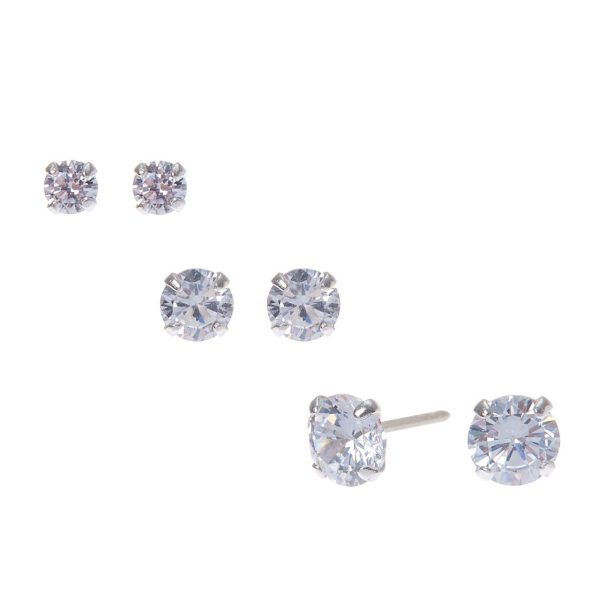 / Sterling Silver Cubic Zirconia Round Stud Earrings – 3MM, 4MM, 5MM Claire’s